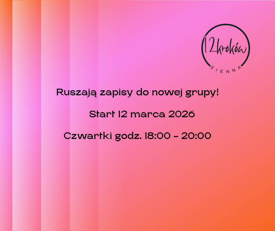 Trwają zapisy do nowych grup: ▪ wtorki – godz. 11.30-13.30, ▪ czwartki – 17.30-19.30. Czym jest „12 Kroków”? To trwający 1,5 roku cykl cotygodniowych spotkań zamkniętej grupy, podczas których uczestnicy dzielą się swoimi doświadczeniami z [...]